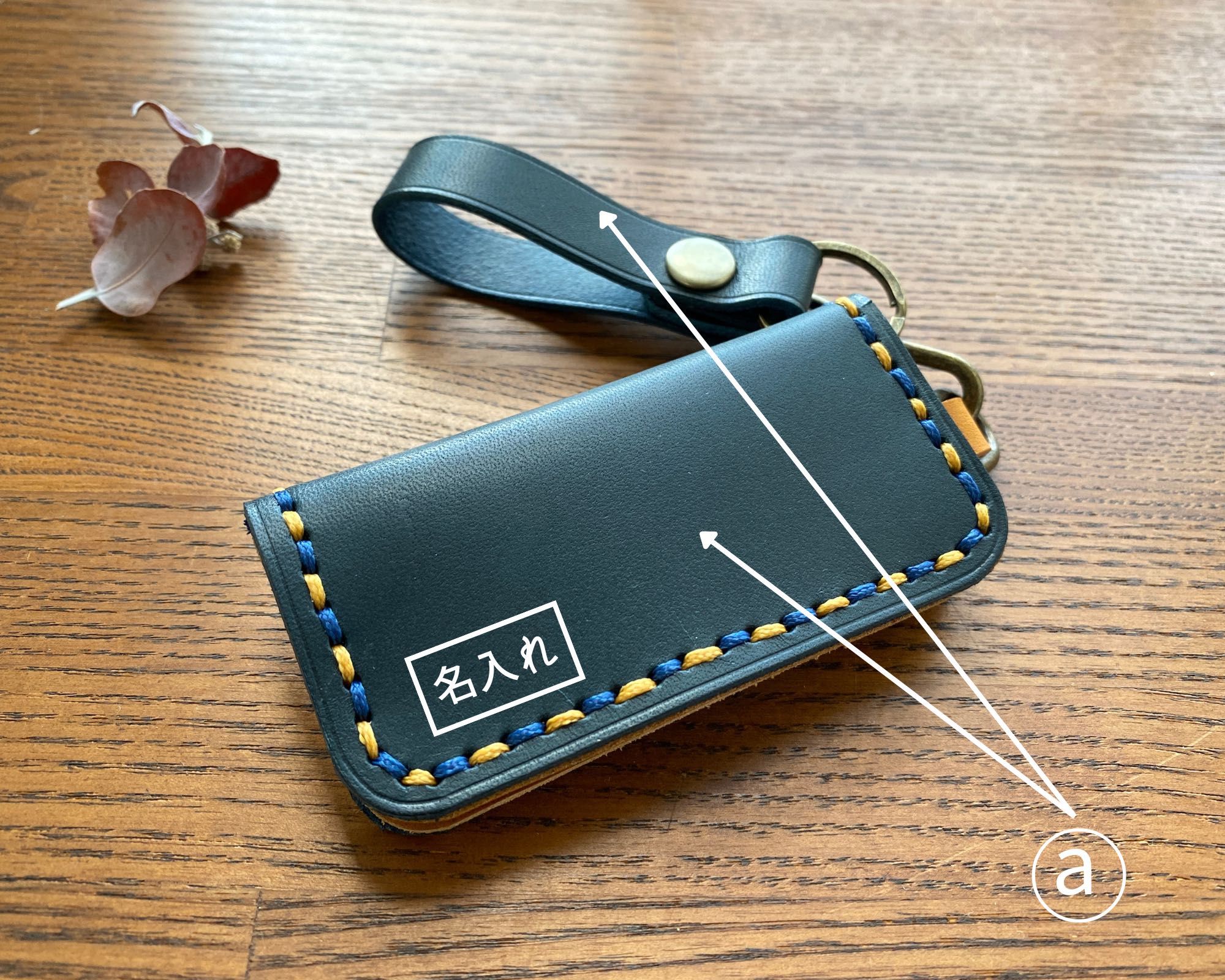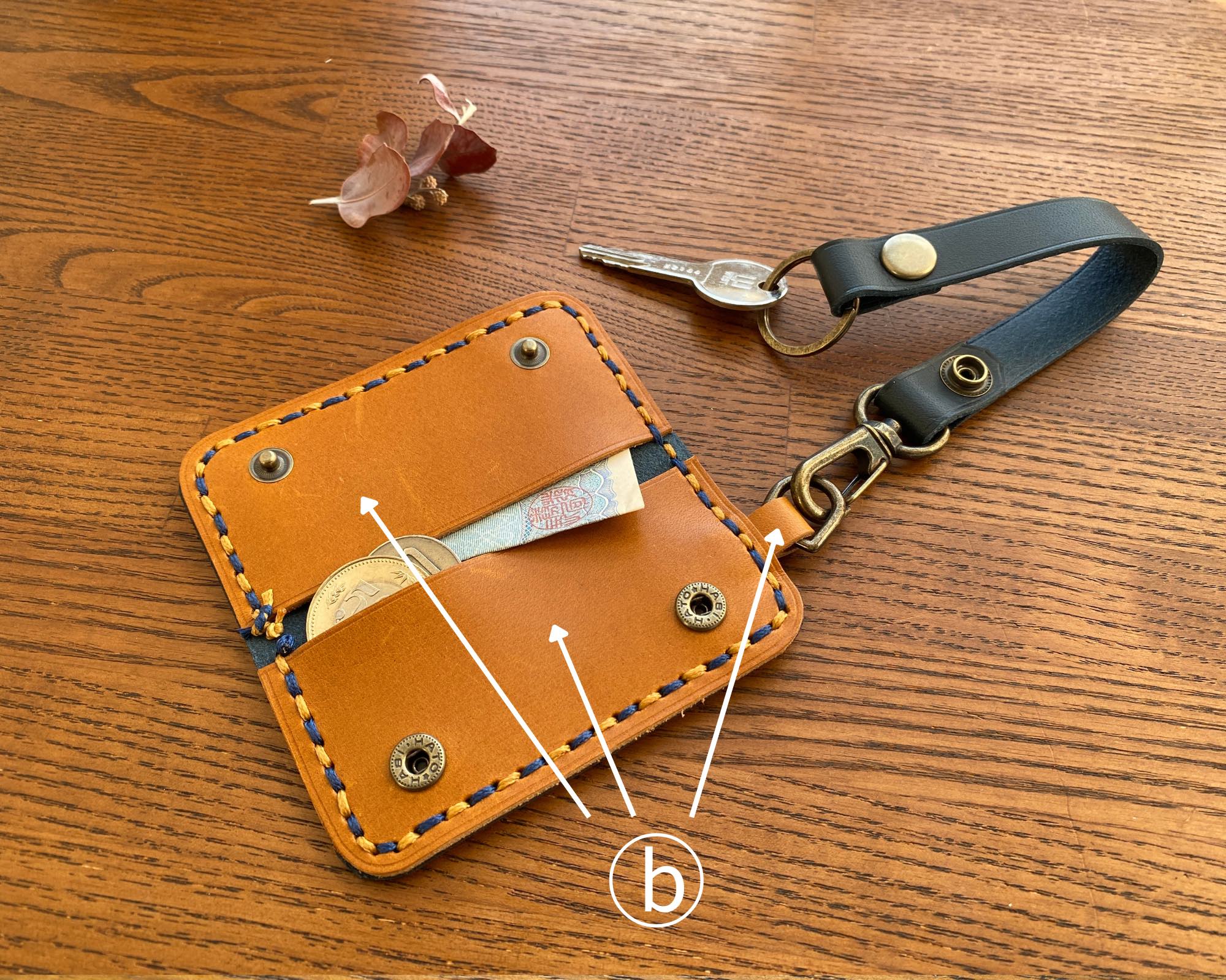 ② 内側のポケット革の色(b)