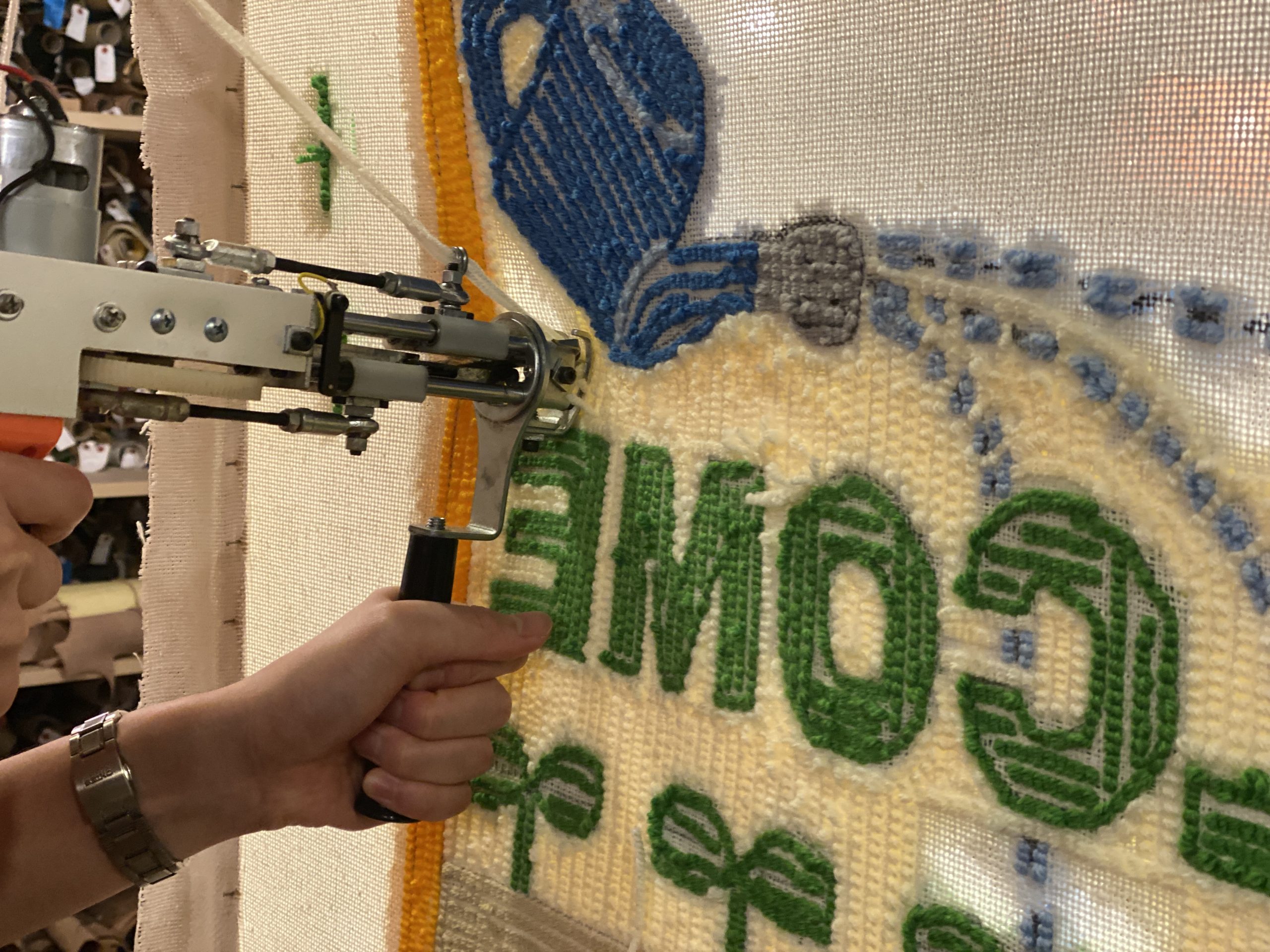 *タフティング終了後、こちらで「バリカン仕上げ」「裏面の滑り止め仕上げ」を行い乾燥後