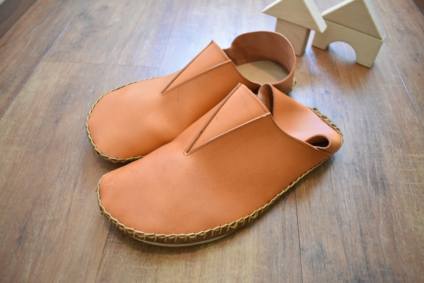 手縫いのさんかく部屋履き靴