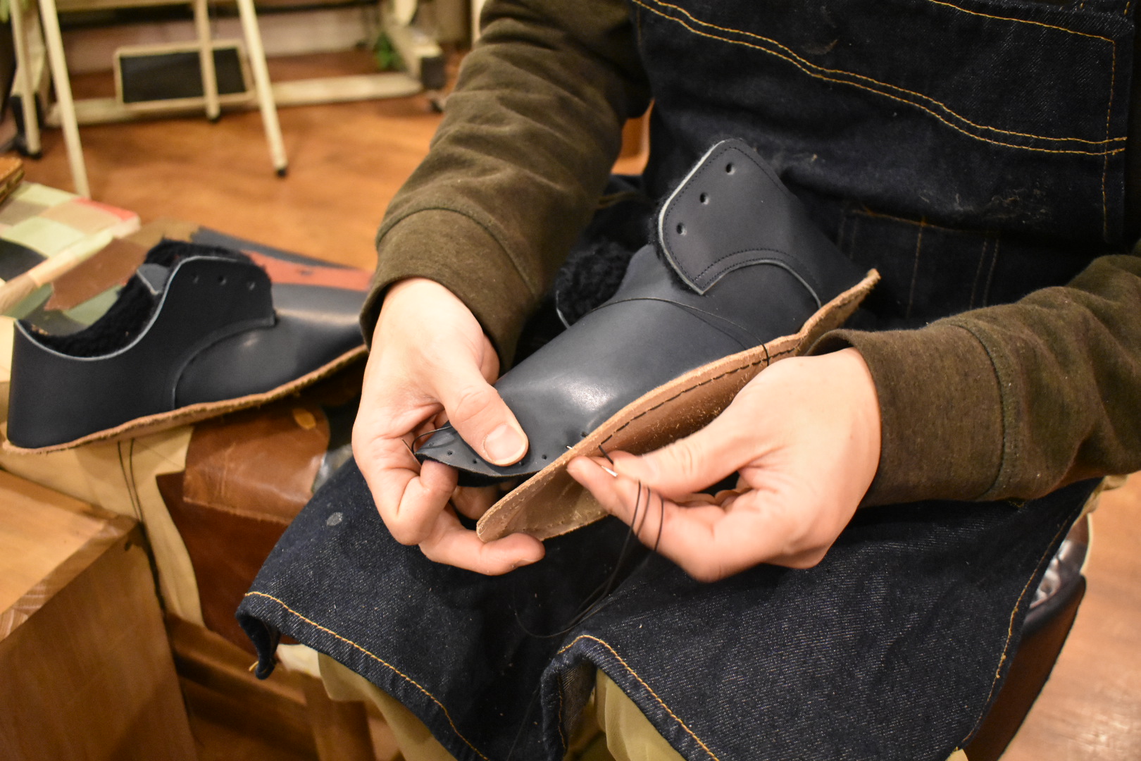 約4〜5時間(1時間休憩あり) 穴あけ作業、手縫い作業、ソールの削り作業、等を行っていただきます。