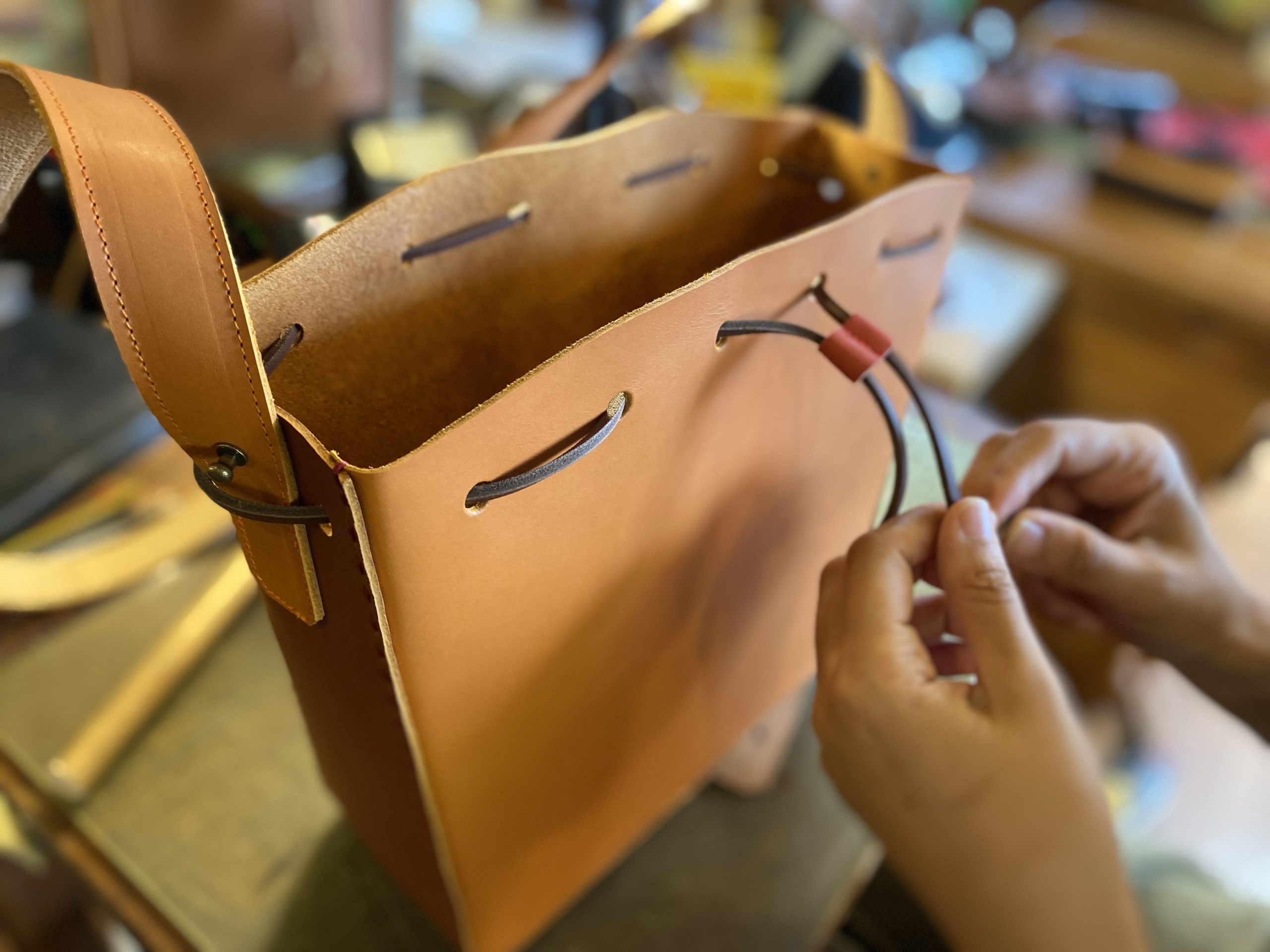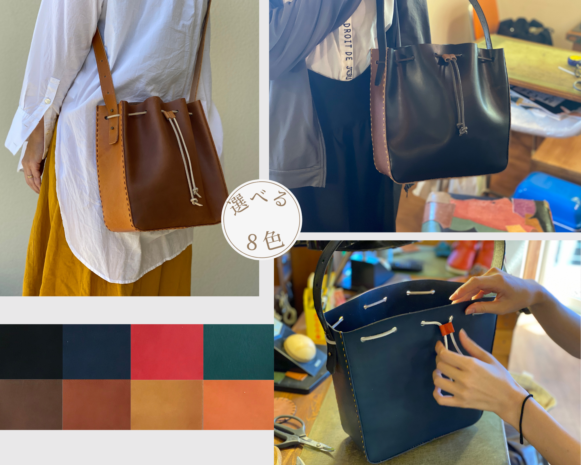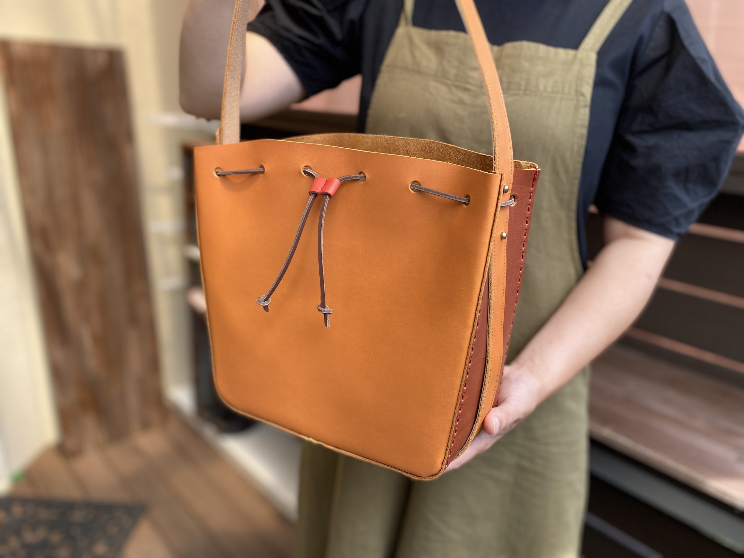 ◆ 工房で1日完成ワークショップ オーガニックレザー巾着バッグ ◆