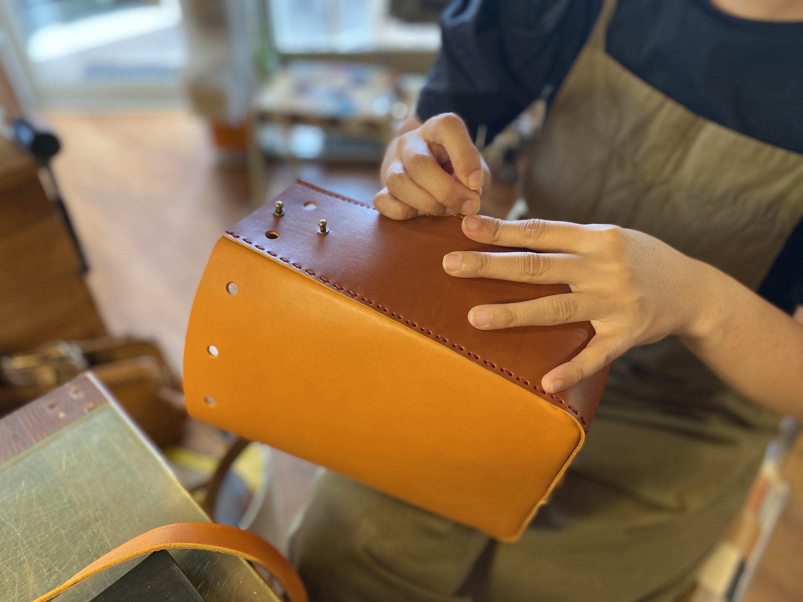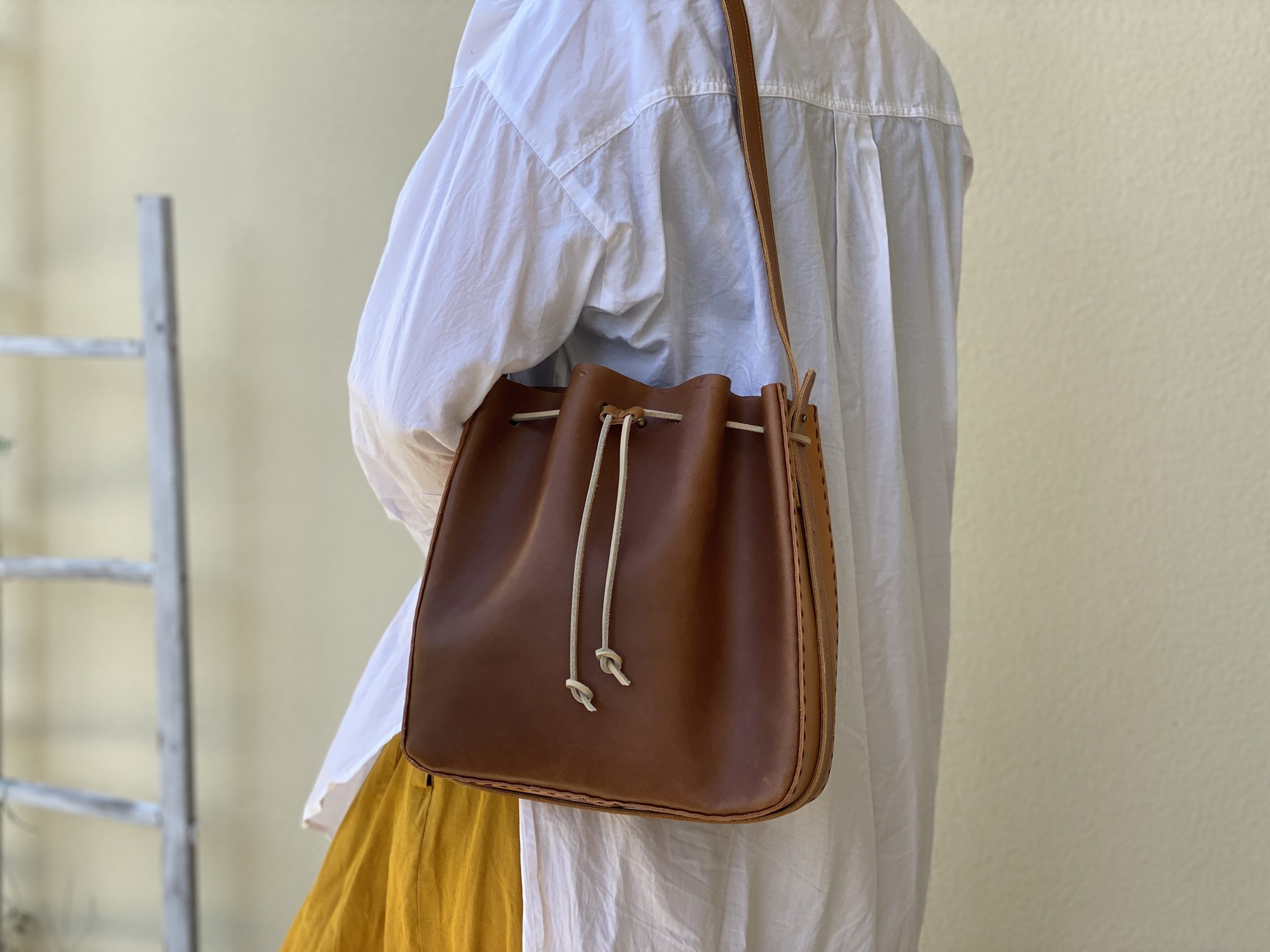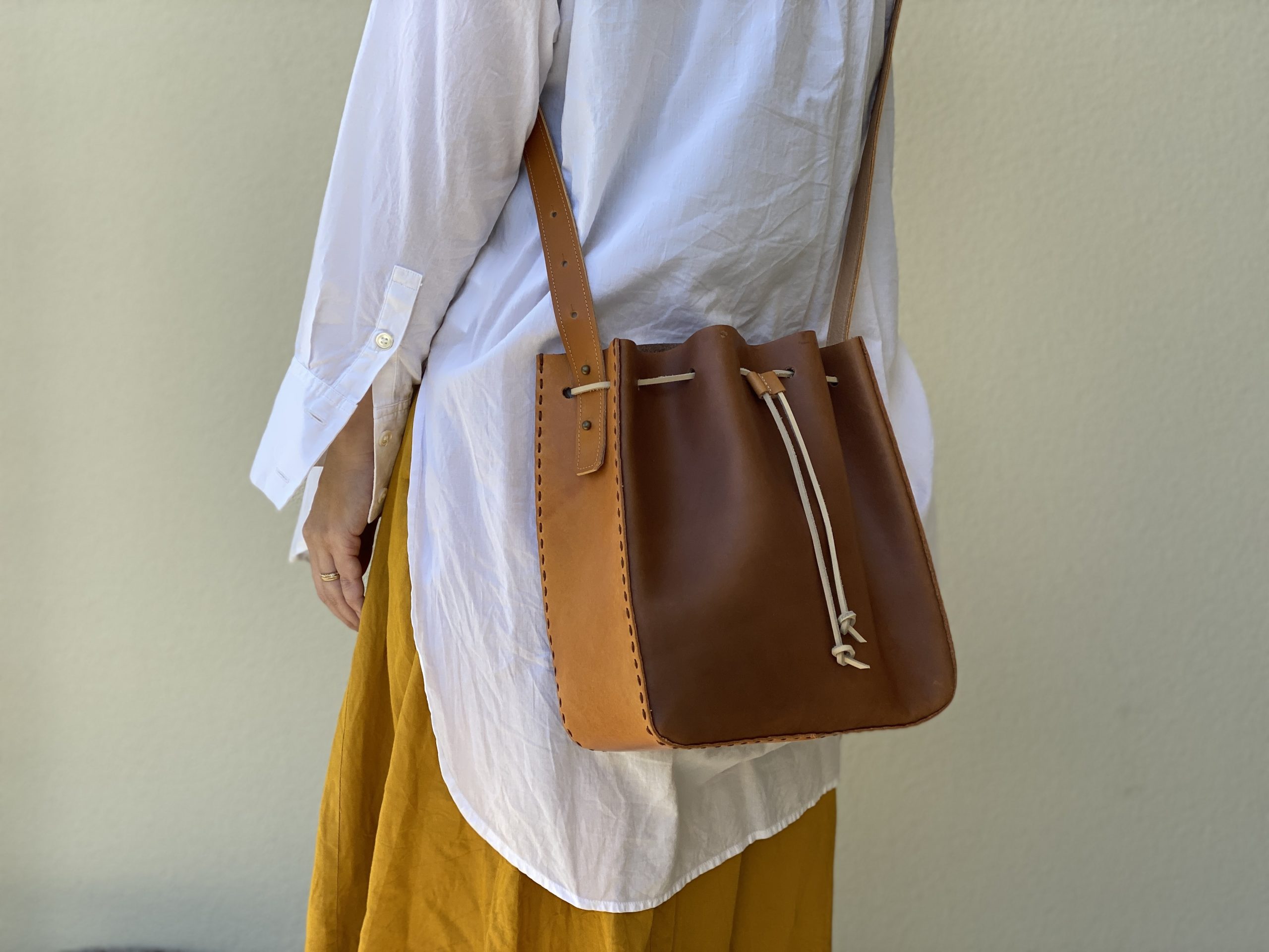 ◆ 工房で1日完成ワークショップ オーガニックレザー巾着バッグ ◆