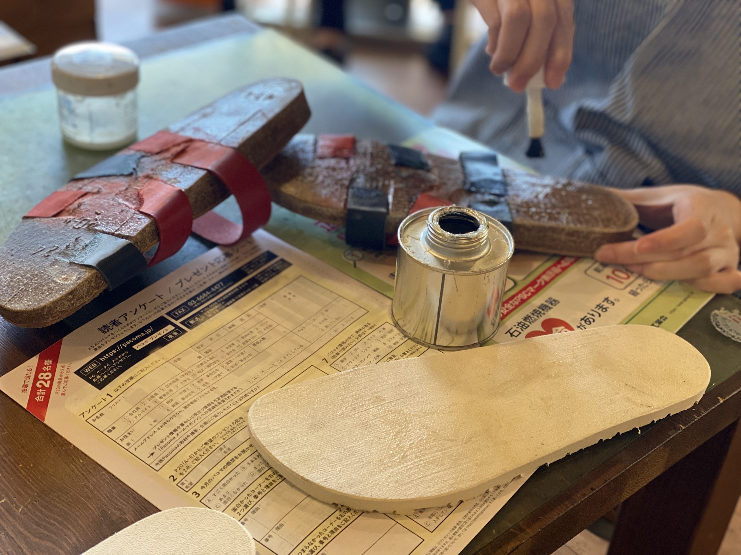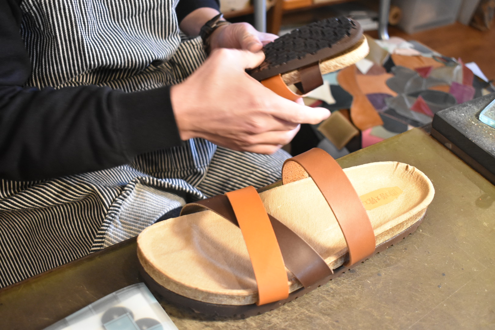 革を組み合わせての接着作業、ソールの削り作業、等を行っていただきます。
