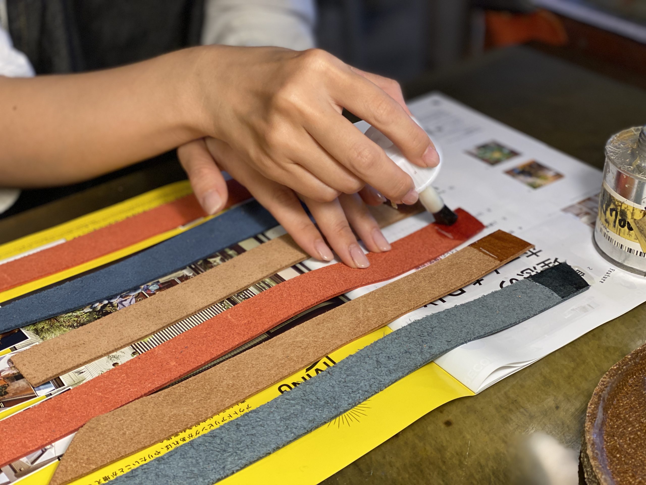 約3時間 革を組み合わせての接着作業、ソールの削り作業、等を行っていただきます。