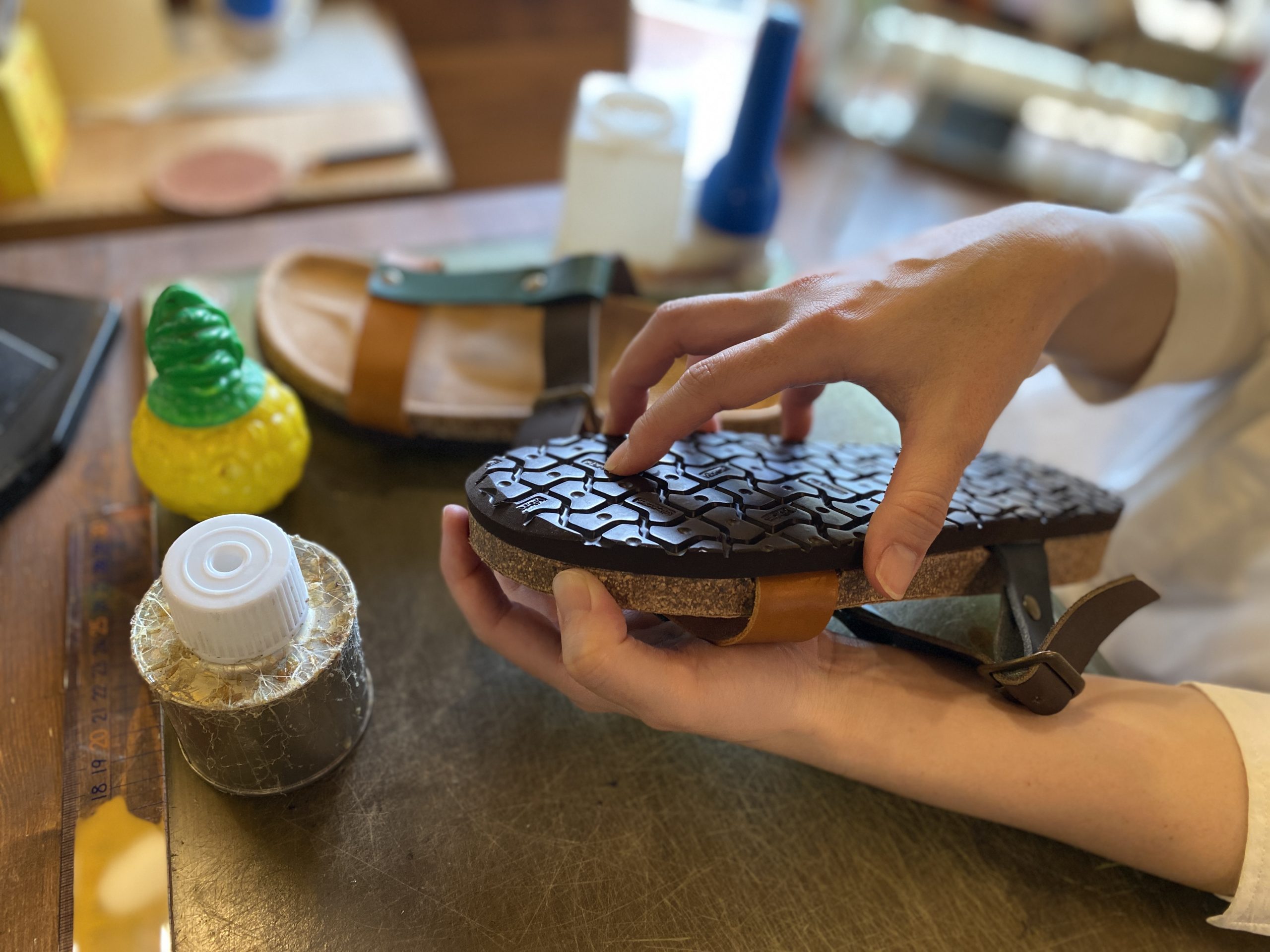 革を組み合わせての接着作業、ソールの削り作業、等を行っていただきます。