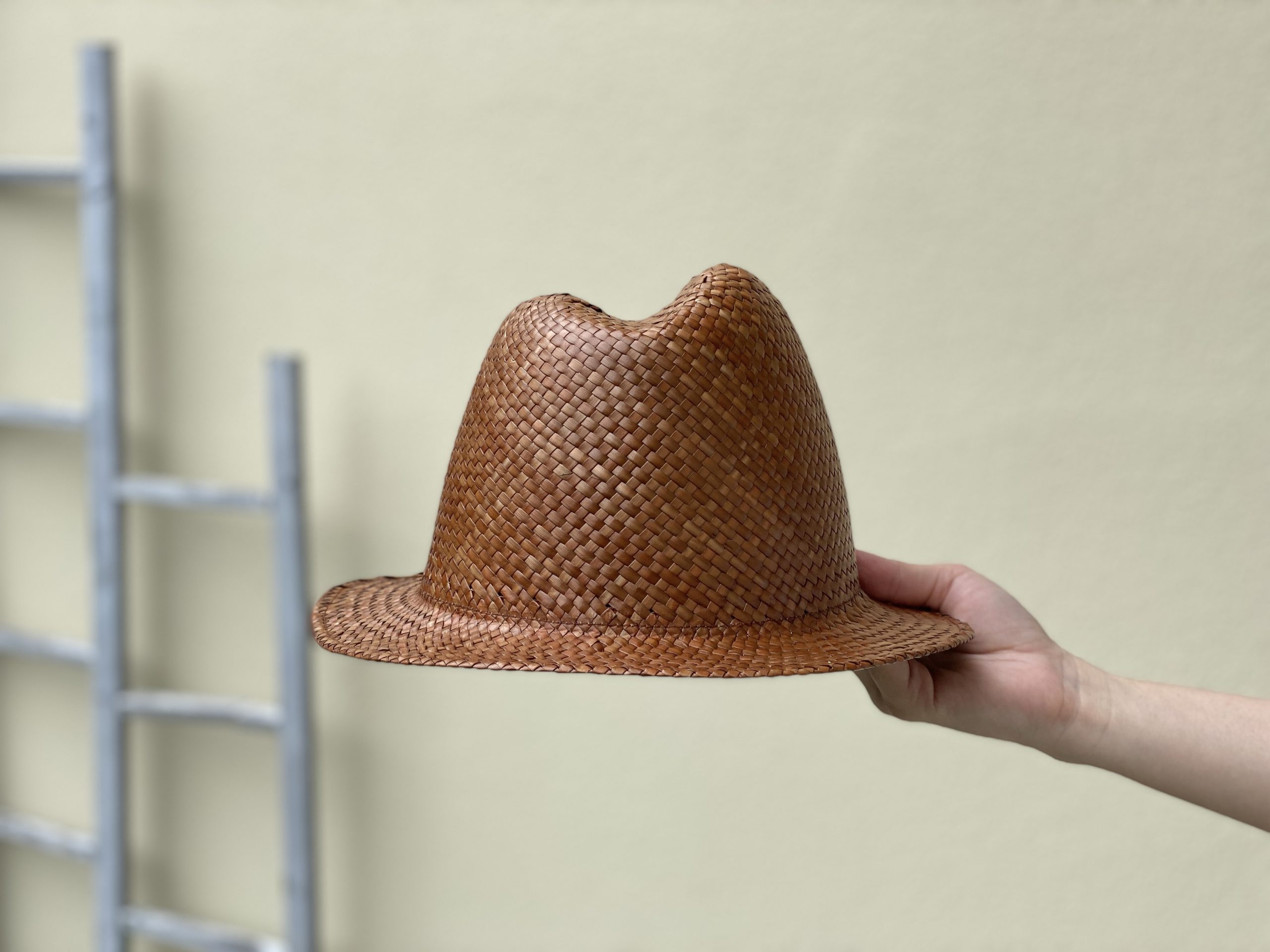 木型を使って出来上がる麦わらハットです。