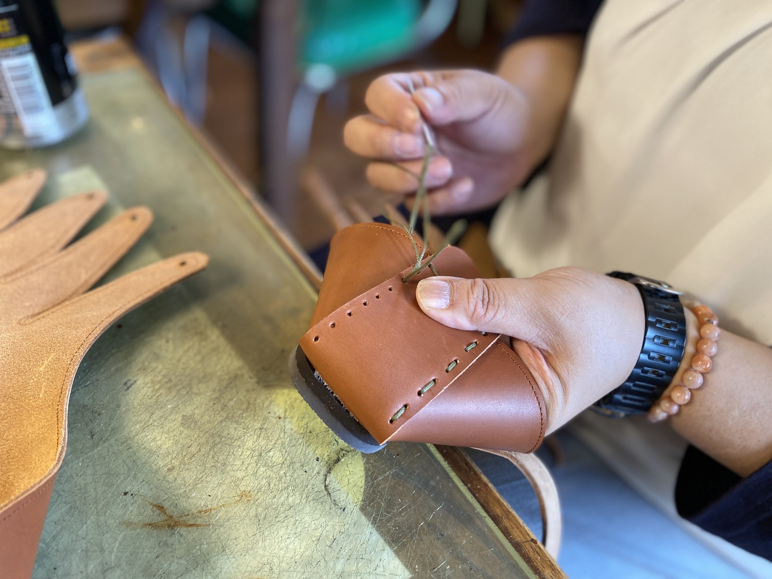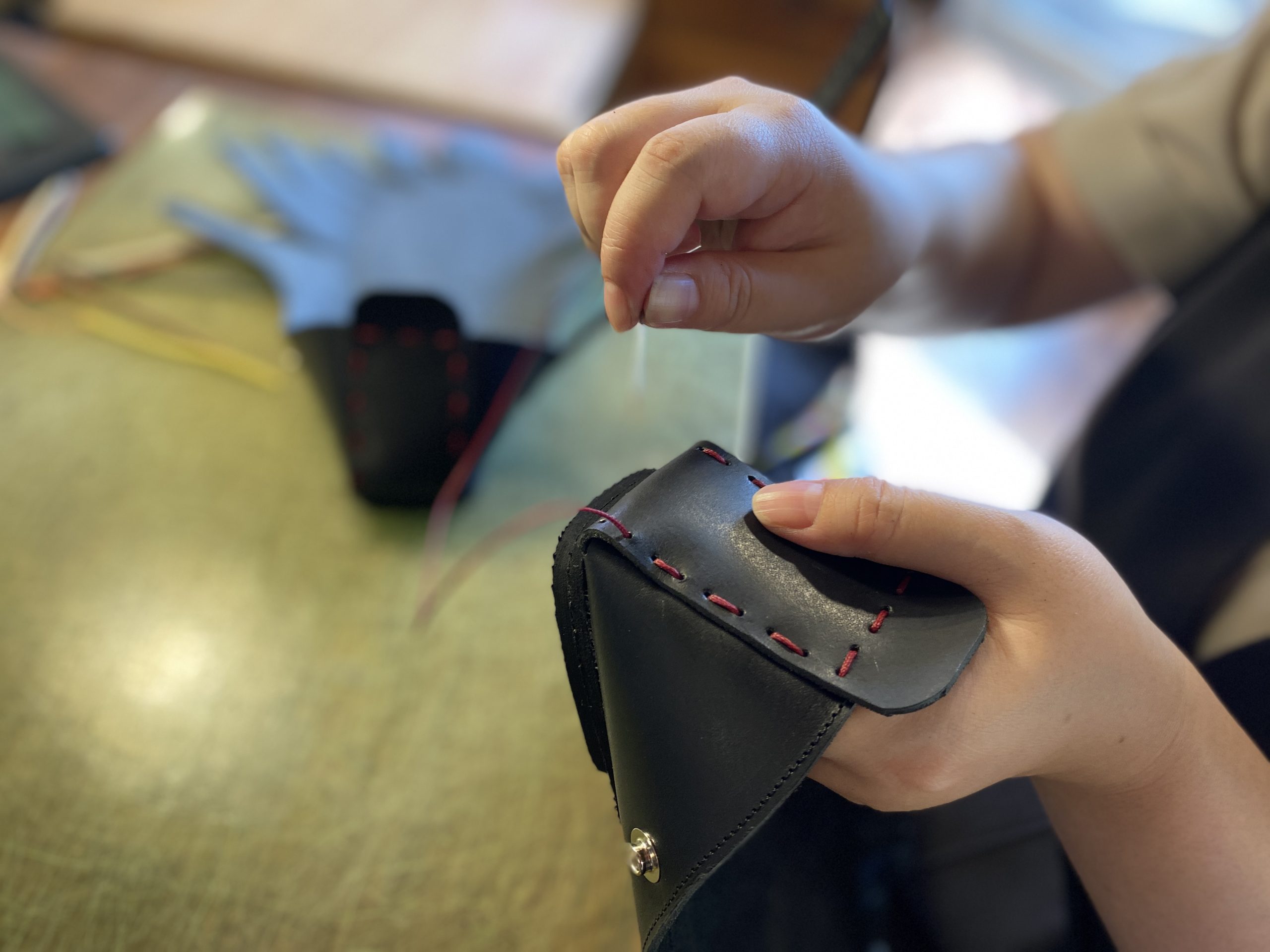 □ 完成まで 約2〜3時間 穴あけ作業、手縫い作業等を行っていただきます。