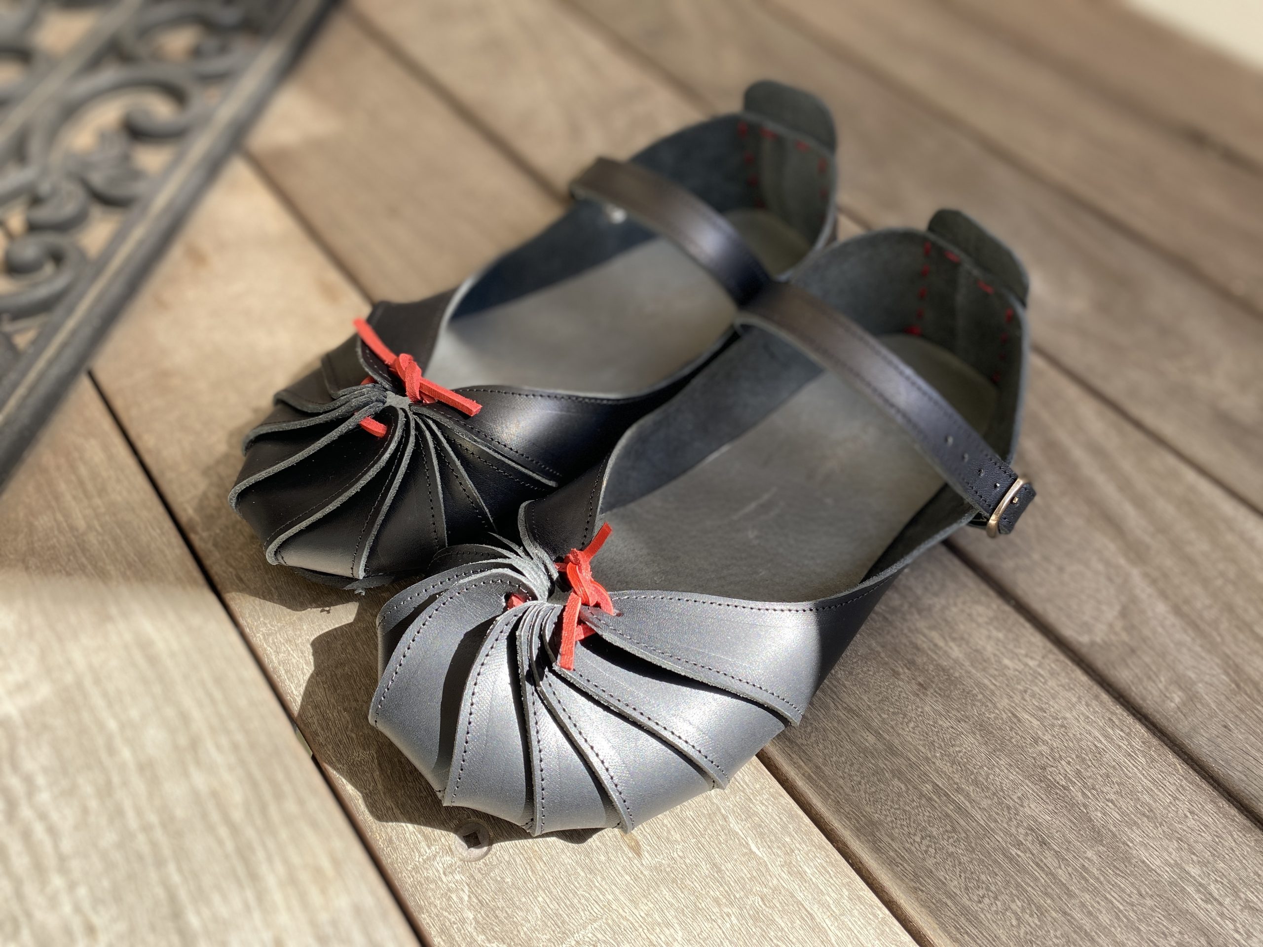 足先は適度にゆとりをとり、甲をストラップでしっかりホールドしてくれる