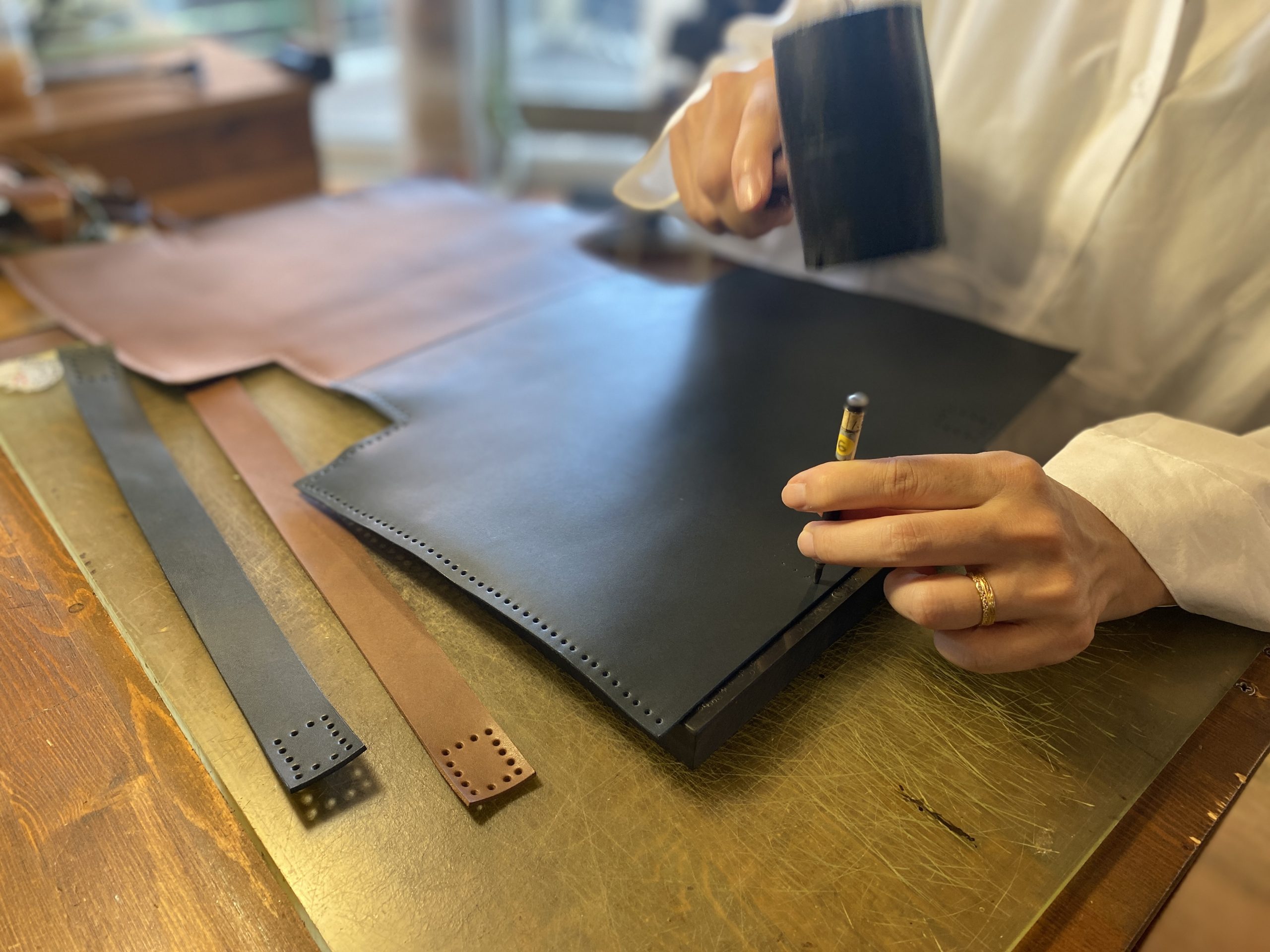 自分だけのオリジナルレザートートバッグを作ることができます。